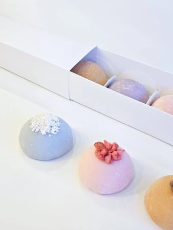 Сливочный мусс с сочным центром из клубники, на основе из маскарпоне, йогурта и белого шоколада. Сливки 33%, желатин, рисовое тесто.