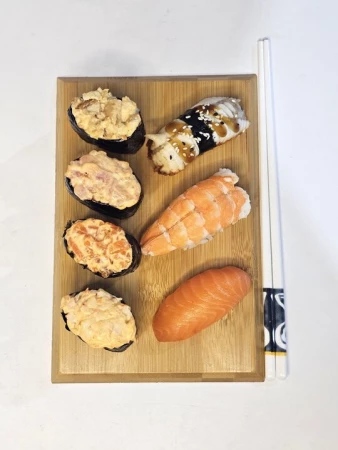 Унаги чиз, Калифорния с креветкой, Маки с лососем, Краб темпура