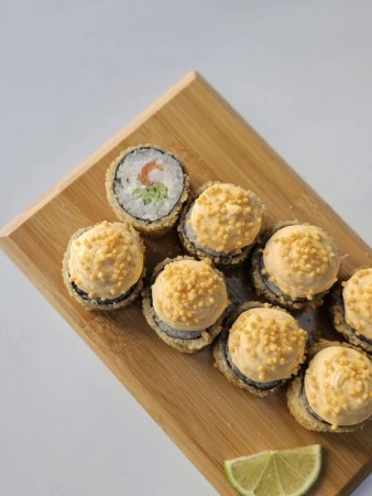 Тунец темпура, Тунец запеченный, Чикен запеченный, Краб темпура, Креветка темпура, Калифорния краб запеченная.